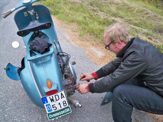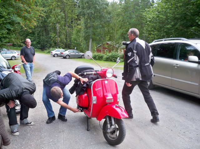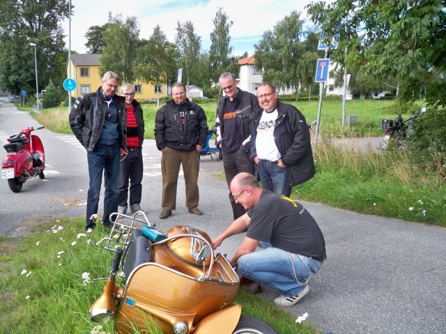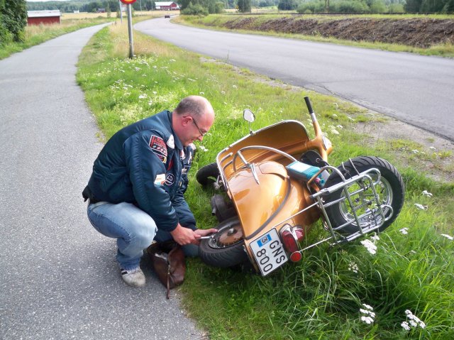 Väl framme snackades det scooterproblem, scootertrim, scooterdelar vem ska man köpa av? leveranstider. Det var som vanligt med andra ord. Turen hem gick som smort inga större missöden, en punka och en urhoppad 4a var väl allt.