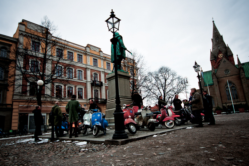 Var och en kickade igång sin nyservade maskin hemmavid för att tillsammans kl.17 kicka in 2009 års scooter säsong på vårt nya hangout, längst upp vid Engelbrekt-statyn mitt emot Nikolaikyrkan på Stortorget i Örebro.